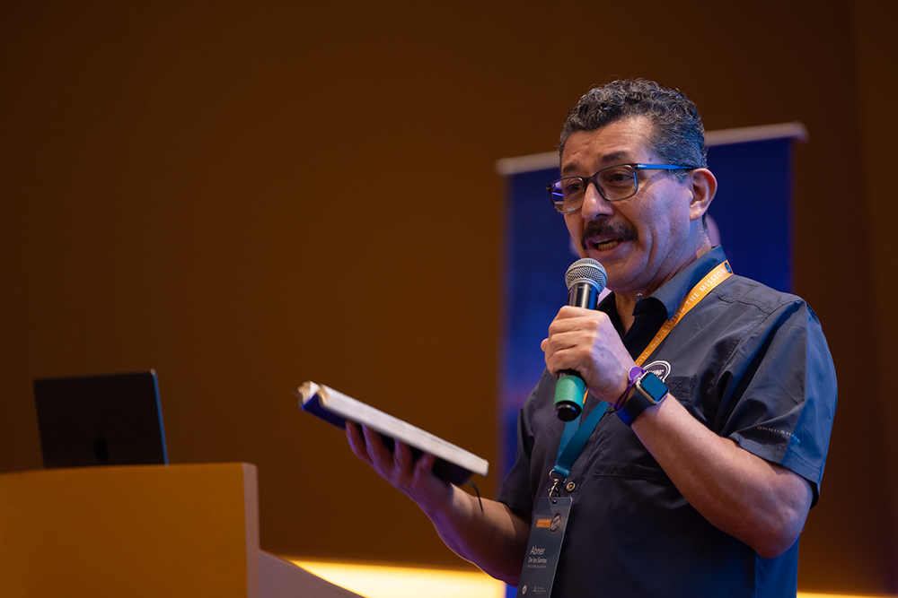 Abel Márquez, director de comunicación de la División Interamericana, presenta la iniciativa OneVoice27, que combinará la divulgación mediática y la participación de la iglesia local para conectar a las personas con Jesús en todo el territorio. [Fotografía: Daniel Gallardo/DIA]