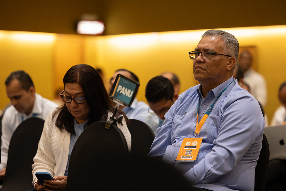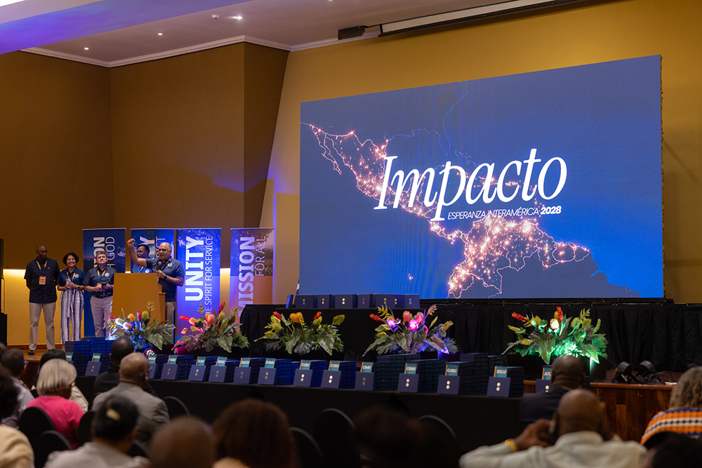 Josney Rodríguez, secretario de la Asociación Ministerial de la División Interamericana, presenta la iniciativa Impacto 2028, que movilizará a las iglesias para que establezcan cien mil lugares de predicación en todo el territorio. [Fotografía: Daniel Gallardo/DIA]