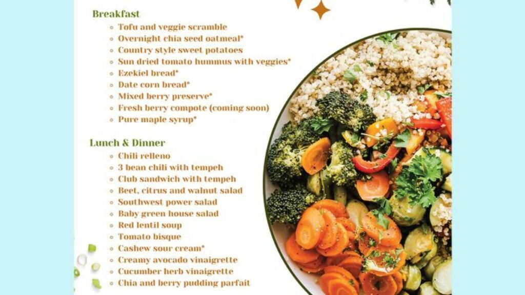 El menú terapéutico de alimentos integrales de origen vegetal fue elaborado por chefs ejecutivos, dietistas registrados y médicos especializados en medicina de estilo de vida. Los pacientes pueden ordenar de ese menú y los médicos pueden ordenar la nueva “dieta terapéutica de alimentos integrales de origen vegetal” para pacientes, basándose en recomendaciones de su tratamiento.