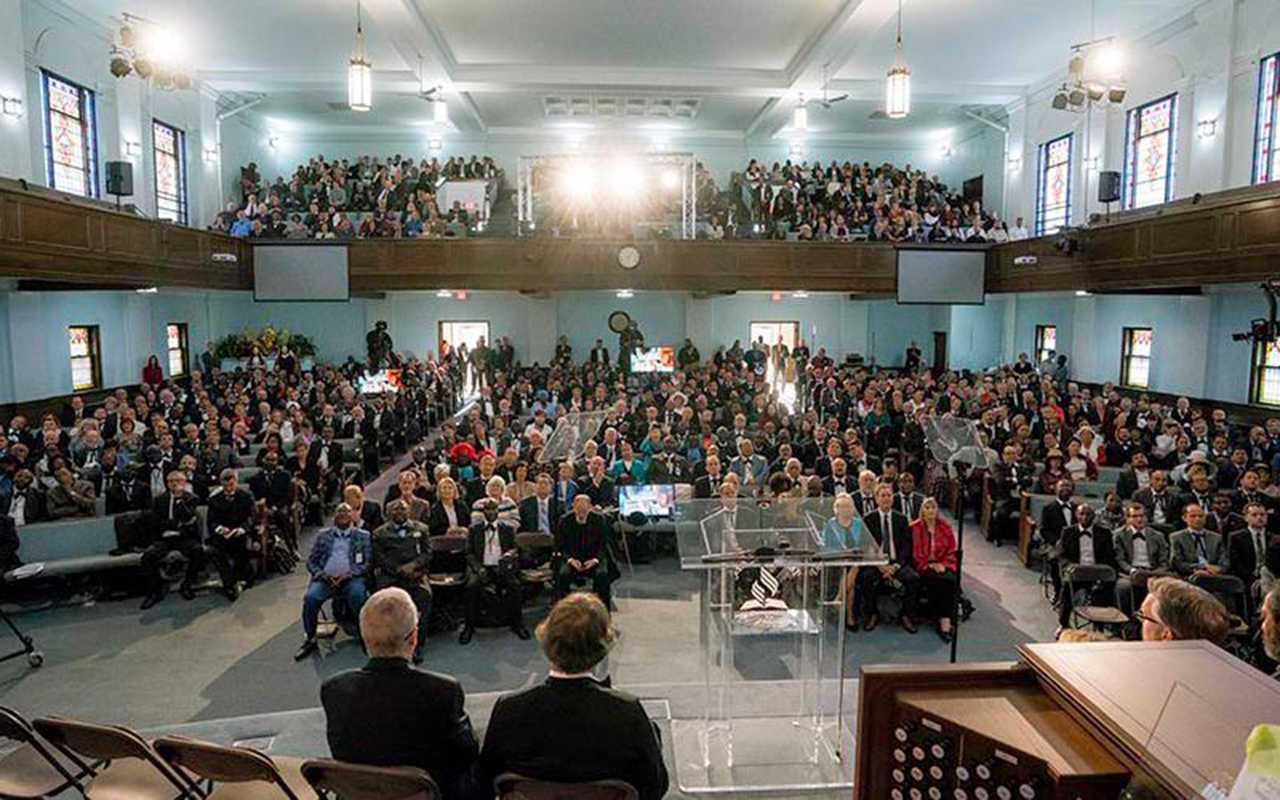 Les principaux dirigeants Adventistes du Septième Jour participent au culte d’adoration dans le Tabernacle de Battle Creek à Battle Creek, au début des rencontres du concile annuel dans le Michigan, aux États-Unis, le 13 octobre 2018. Photo de Henry Stober, Réseau Adventiste d’Information
