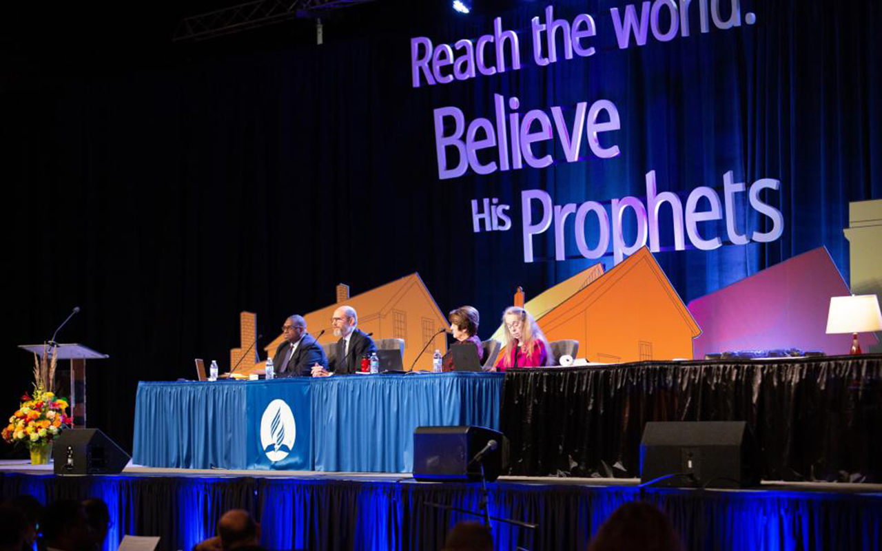 Mike Ryan, président du Comité de Supervision de l’Unité, présente la discussion de l’après-midi sur la proposition du comité. Photo de Brent Hardinge / Réseau Adventiste d’Information