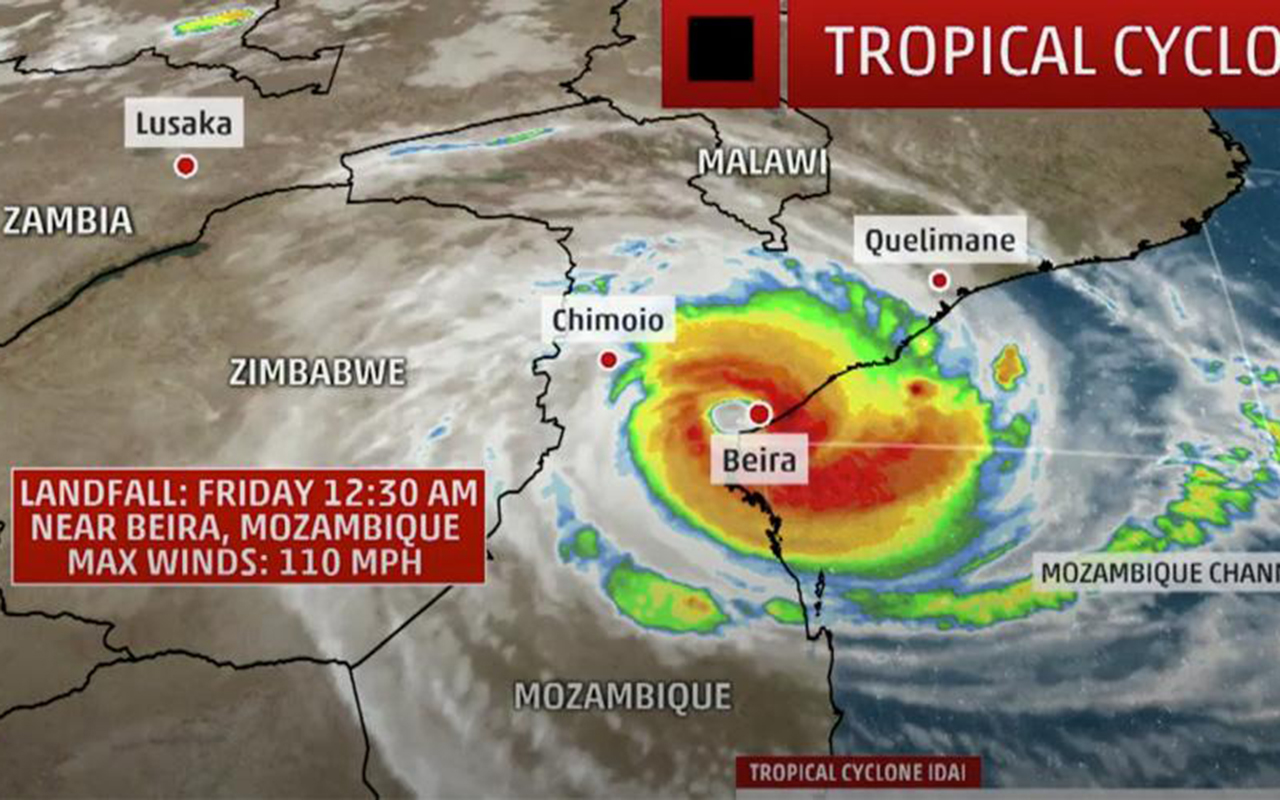Le cyclone tropical Idai est annoncé comme la catastrophe météorologique la plus meurtrière à avoir touché les côtes du Mozambique. Les inondations qui ont suivi son passage auraient coûté la vie à plus de 120 personnes et causé le déplacement de plus de 150000 personnes.