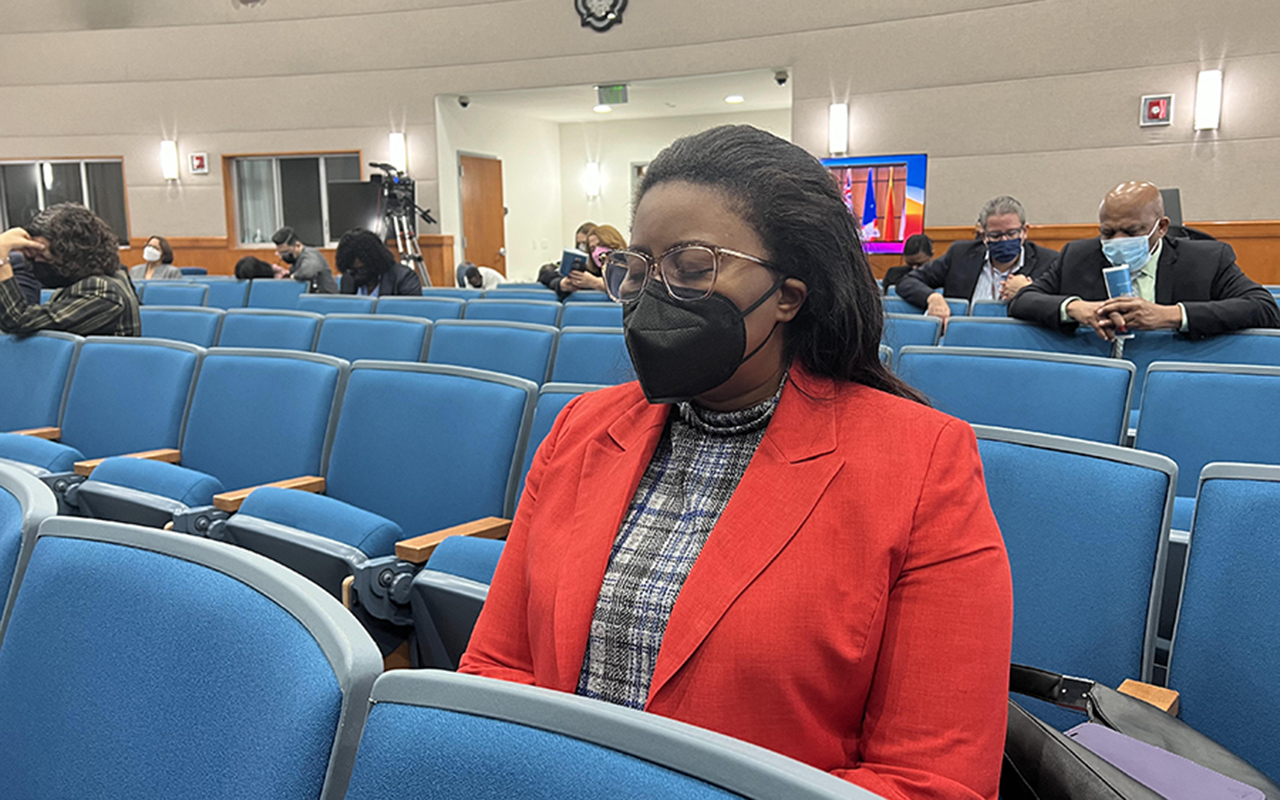 Janelle Scantlebury du Secrétariat de la DIA prend part à l’une des nombreuses sessions de prière auxquelles ont participé les dirigeants de l’église et les membres du personnel lors du premier service de culte de l’année au siège de la DIA à Miami, en Floride aux États-Unis. Les dirigeants de l’Église ont prié pour la direction et la protection de Dieu pour de nombreux membres du personnel de bureau qui sont malades de la Covid et pour les membres d’église à travers le territoire pendant cette pandémie. [Photo : Libna Stevens/DIA]