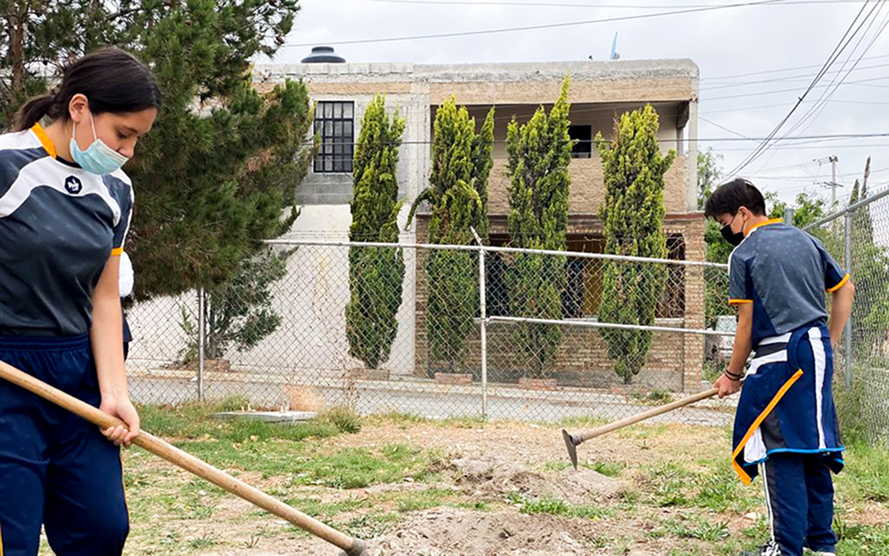 Les élèves du système éducatif adventiste dans l’Union du Nord du Mexique préparent le terrain pour planter plusieurs arbres dans le cadre de l’initiative régionale de reboisement engageant 19 écoles maternelles, primaires et secondaires du 11 au 17 mai 2022. Quelque 700 élèves et enseignants ont nettoyé, embelli, et planté 400 arbres lors de l’initiative. Photo : Union du Nord du Mexique/SEA]