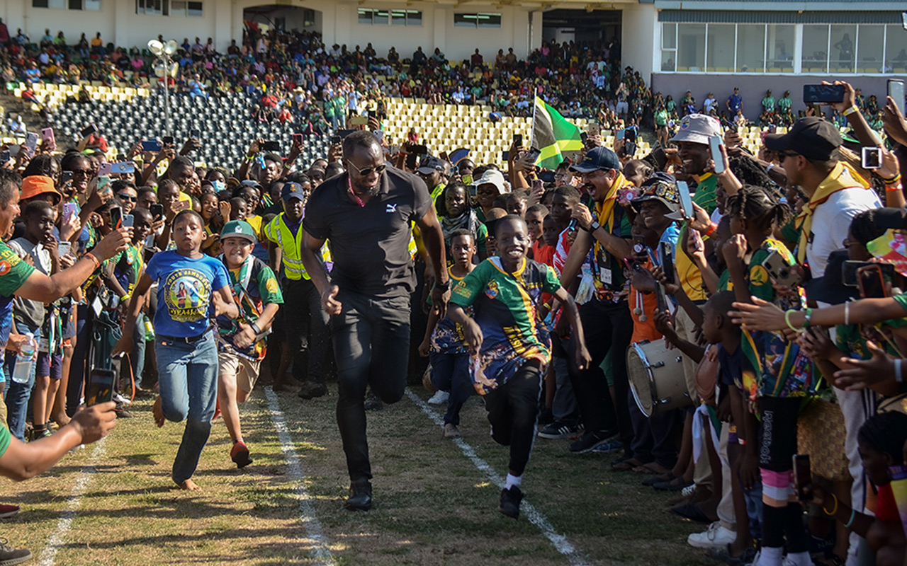 Le phénomène du sprint et détenteur du record du monde, Usain Bolt, était la principale attraction de la deuxième journée du 5ème Camporée des Éclaireurs de la Division Inter Américaine le 5 avril 2023.