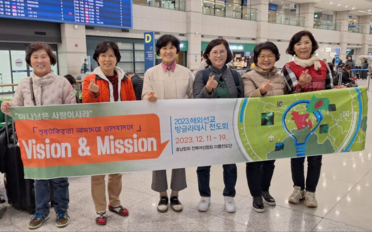 Même si le Bangladesh est un champ missionnaire éloigné de la Corée, nécessitant deux transferts de vols pour s’y rendre, 35 femmes se sont portées volontaires. Pour certaines d’entre elles, le voyage jusqu’au lieu de mission a duré 38 heures, étant donné les perturbations météorologiques. Il y a même eu un atterrissage d’urgence à Kolkata, en Inde, ainsi qu’un détour par Bangkok avant l’arrivée au Bangladesh.