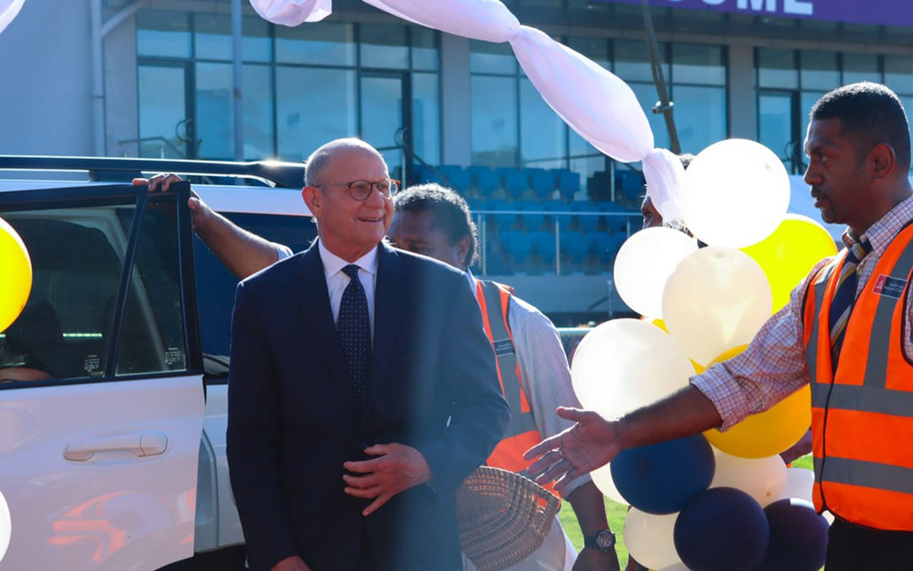 Ted N. C. Wilson arrive au Parc Churchill à Lautoka, aux Iles Fidji. [Photo : Adventist Record]