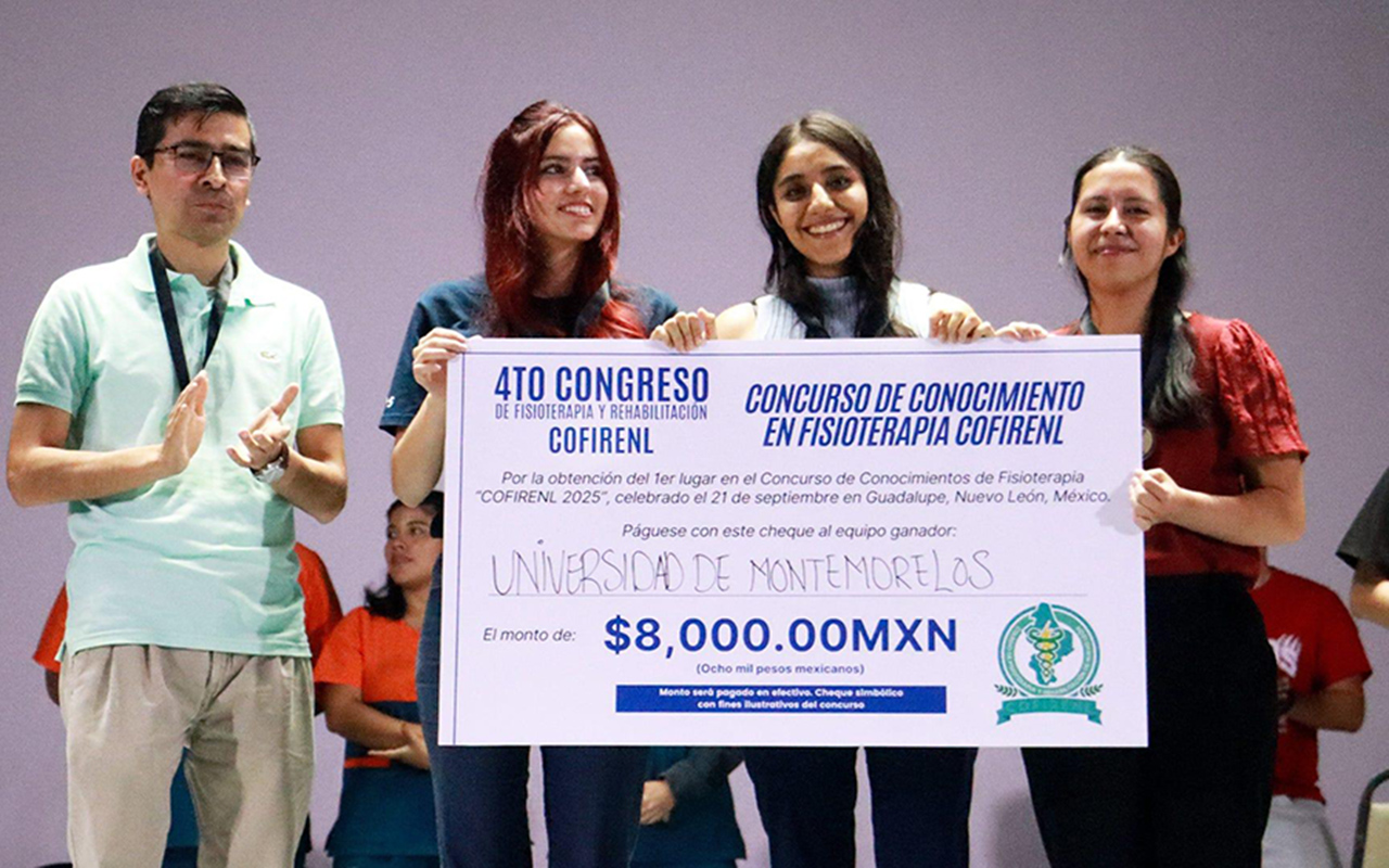 Une équipe de l’Université de Montemorelos (UM) a remporté pour la deuxième année consécutive la première place au Concours d’État de connaissances en physiothérapie « Fisiotrón », organisé par le Collège de physiothérapie et de réadaptation de Nuevo León (COFIRENL). L’édition 2025, axée sur la traumatologie et l’orthopédie, s’est tenue dans le cadre du 4e Congrès de physiothérapie et de réadaptation, les 20–21 septembre, au Teatro Sara García, à Guadalupe, Nuevo León (Mexique).