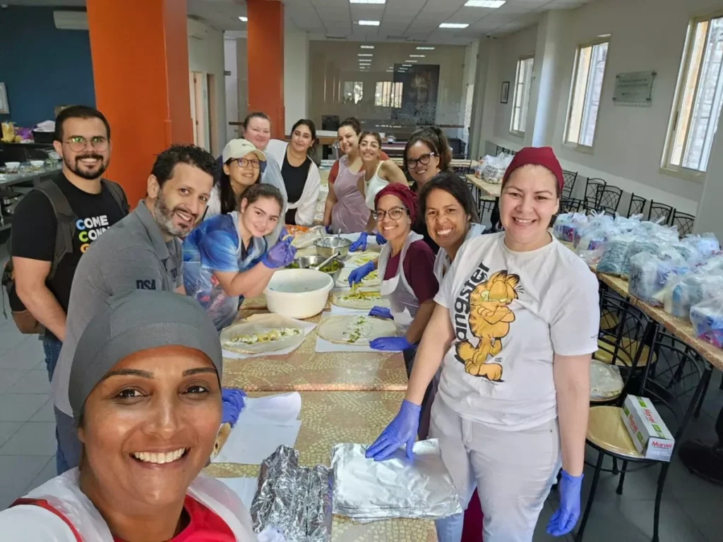 Des étudiants et des membres du personnel de l’Université du Moyen-Orient, ainsi que des membres des églises locales à Beyrouth, au Liban, préparent des sandwichs pour les personnes déplacées en 2024. [Photo : Union Mission du Moyen-Orient et de l’Afrique du Nord]