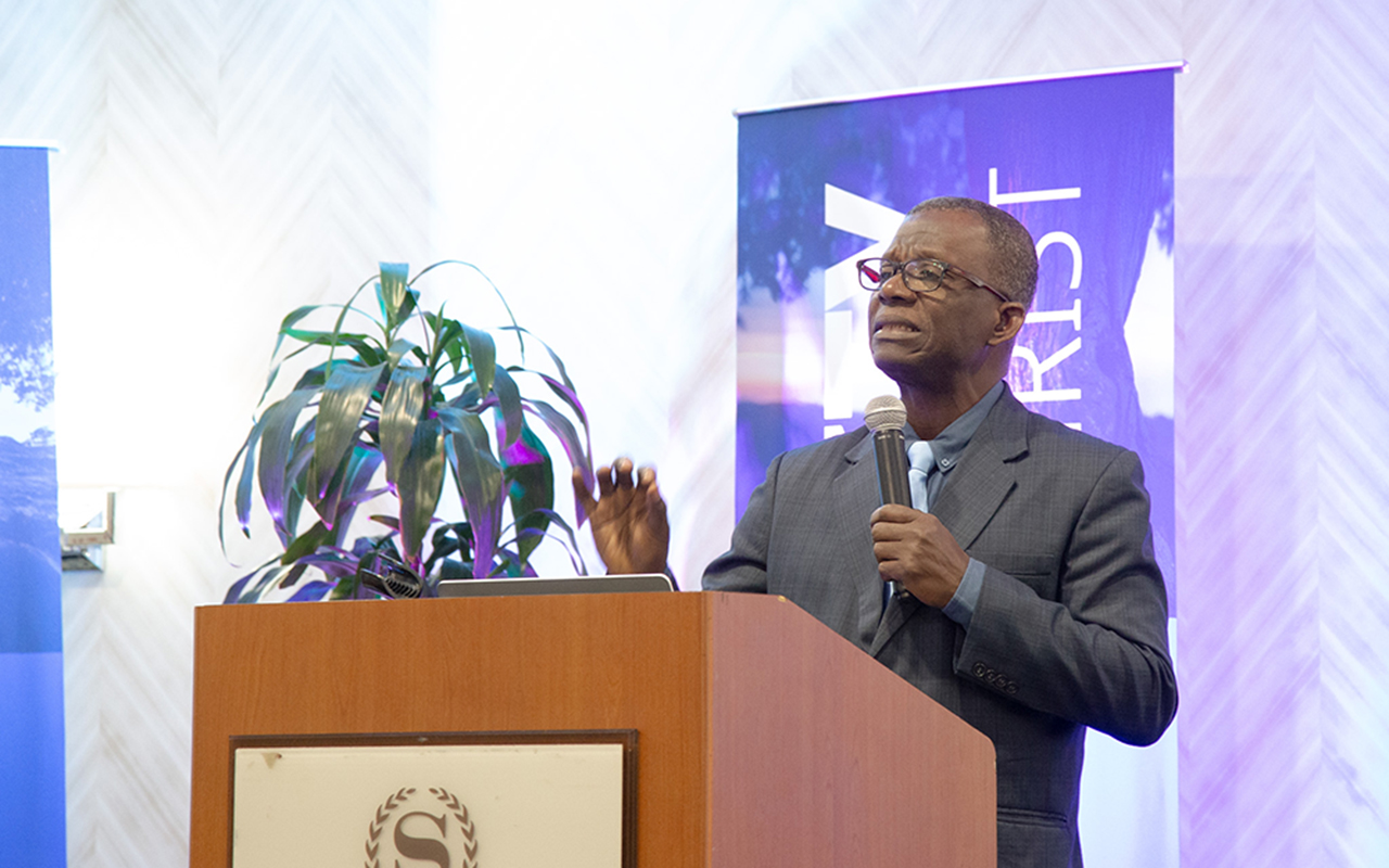 « Nous ne pouvons vivre la mission de Dieu sans vivre pour le Dieu de la mission, » a déclaré Pierre Caporal lors d’une méditation durant les rencontres consultatives de la DIA à Miami, en Floride. [Photo : Libna Stevens/DIA]