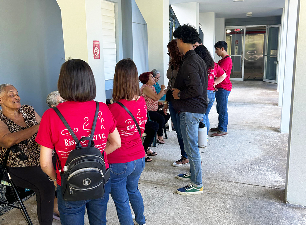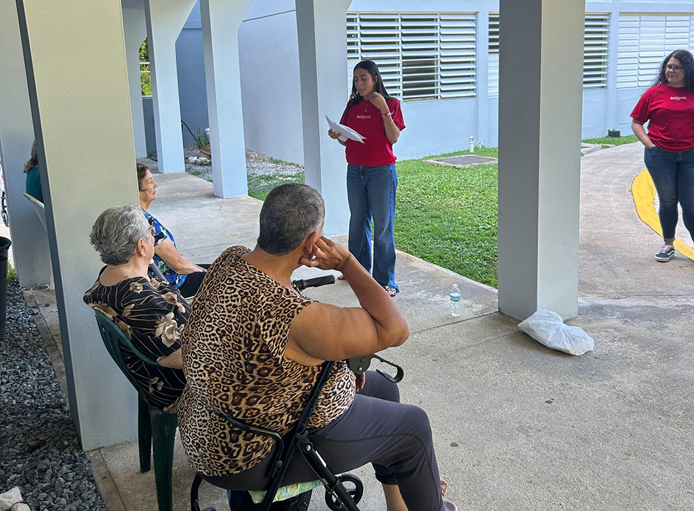 Les jeunes écoutent les résidents d’un foyer pour aînés lors d’une sortie spéciale dans le cadre du congrès. [Une photo de la Fédération du nord de Porto Rico]
