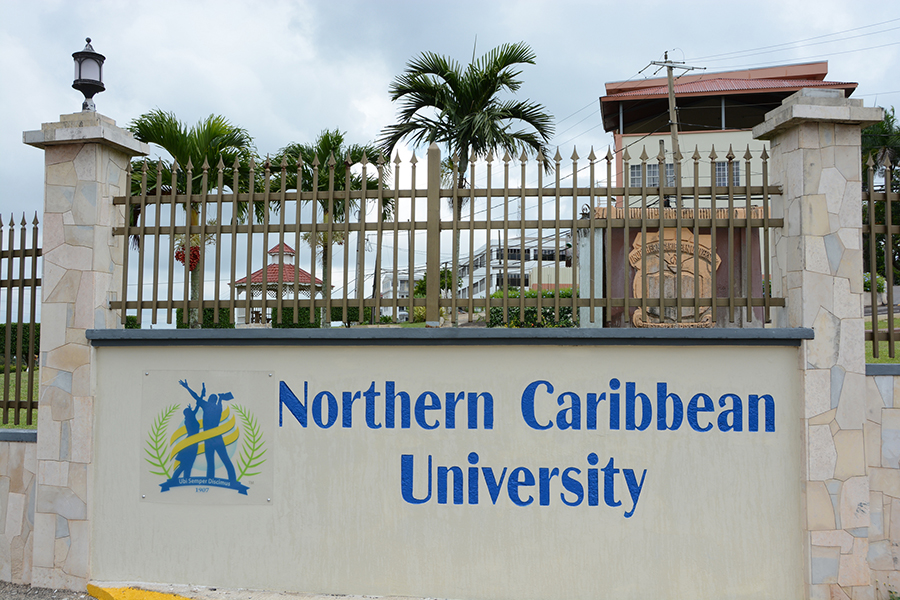 L’affichage du nom de l’Université du Nord de la Caraïbe à l’entrée du campus à Mandeville, en Jamaïque. [Photo d’archives : Université du Nord de la Caraïbe]