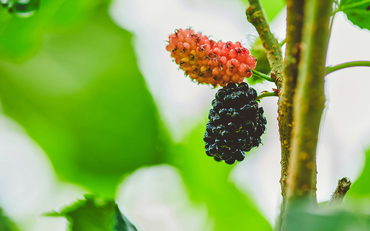 Fruits de mûrier sauvage sur la plante, une ressource naturelle étudiée pour ses applications potentielles en matière de conservation des aliments. [Photo : Rafael Rodrigues/Unsplash]